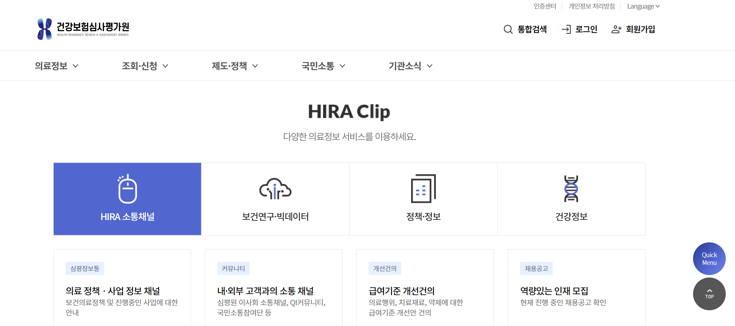 - 카카오톡 앱에서 ‘건강보험심사평가원’ 채널을 친구추가한 후, 인증 로그인을 거치면 별도의 개인정보 입력 없이 바로 이용이 가능합니다.